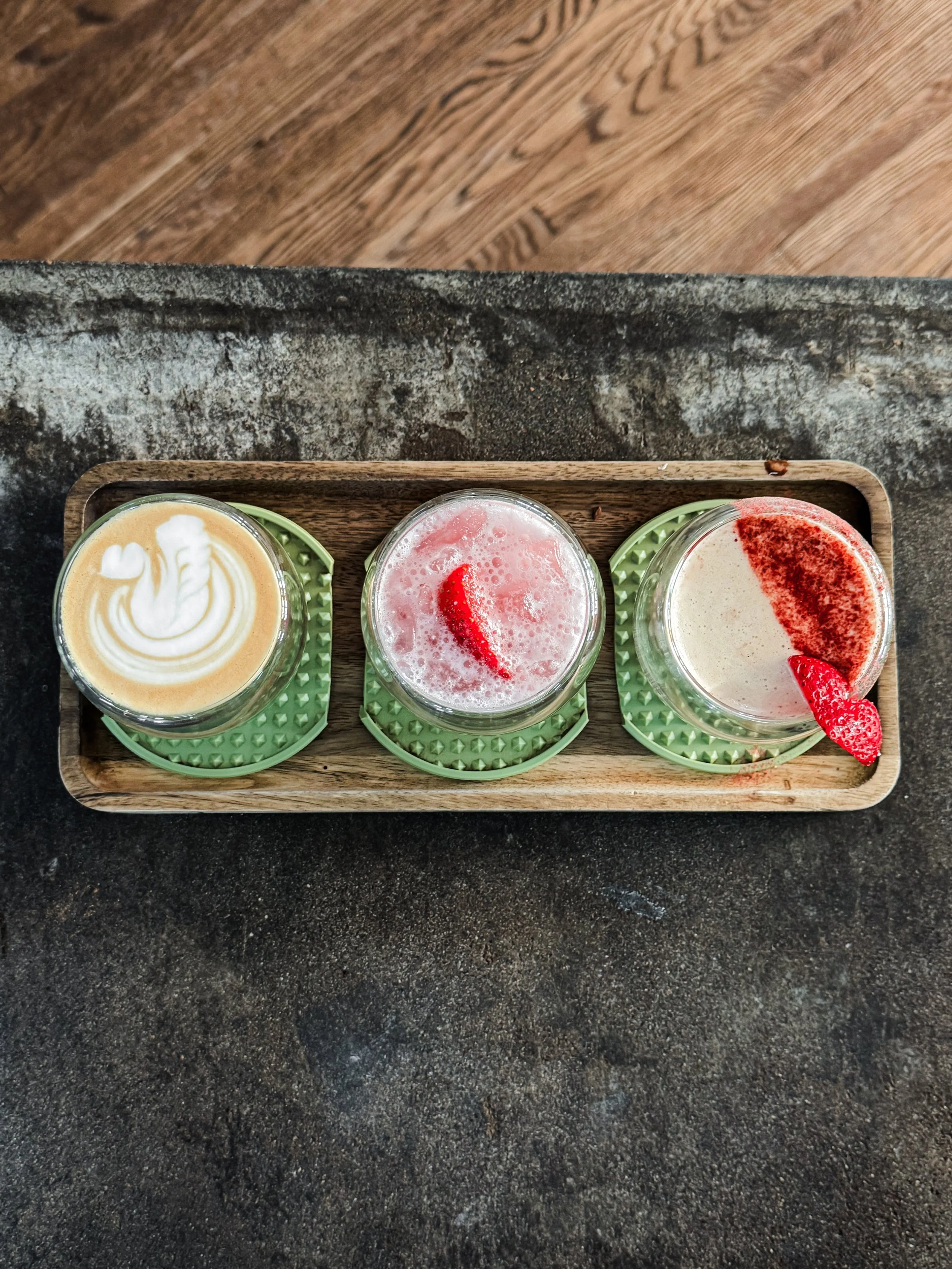 Fall spice Hot honey toddy Featured Bevs Banana Foster Baklava Latte Salted Maple Beverages $3.00 / $3.50 / $3.50 Americano $3.00 / $3.50 / $3.50 $2.75 / $3.50 DRIP COFFEE $2.75 / $3.50 $4.50 / $5.00 / ICED $4.50 CHAI TEA $4.50 / $5.00 / ICED $4.50 $4.50 COLD BREW $4.50 $2.50 ESPRESSO $2.50 $3.50 / $4.50 HOT CHOCOLATE $3.50 / $4.50 $4.50 / $5.50 / ICED $4.50 LATTE $4.50 / $5.50 / ICED $4.50 $5 / $5.50 / ICED $5.25 MATCHA $5 / $5.50 / ICED $5.25 $4.75 / $5.50 / ICED $5.00 MOCHA $4.75 / $5.50 / ICED $5.00 $3.75 / $4.50 STEAMERS $3.75 / $4.50 $3.75 / $4.25 Pour over $3.75 / $4.25 FLAVOR SHOTS: VANILLA, LAVENDER, CARAMEL, BOURBON, ALMOND, SF VANILLA, MIELMILK ALTERNATIVES: ALMOND AND OAT coffee flights COffee flight menu $12 Coffee Lover flight Double Shot of Espresso, 5oz Cortado and 5oz batch of the day $12 $14 Barista Signature Flight 5oz Bourbon Caramel Latte, 5oz Almond Vanilla Latte, and 5oz Miel $14 $14 Cold brew Fanatic flight 5oz Cinnamon Toast Crunch Cold Brew, 5oz Lavender Cold Brew, and 5oz Brown Sugar Cold Brew $14 $14 Painfully Trendy Flight 5oz Salted Maple, 5oz Baklava, 5oz Hot Honey Toddy $14 $14 The Louis Flight 5oz Hot Chocolate, 5oz Chai Latte, 5oz Matcha Tea Latte $14 GREY DUCK NON-COFFEE BEVERAGESTEA, matcha, steamersHot Chocolate, lemonades, chai tea BREAKFAST/FOOD ITEMS $7 BREAKFAST SANDWICH APPLEWOOD BACON, AGED CHEDDAR, EGG SOUFFLÉ, MAPLE SRIRACHA AIOLI ON AN EVERYTHING BAGEL $7 $5.75 Bircher muesli ALMOND MILK, ROLLED OATS, CHIA SEED, MAPLE SYRUP, PEANUT BUTTER, AND CINNAMON $5.75 $5.50 CHIA Pudding COCONUT MILK, HONEY, VANILLA, AND CHIA SEEDS WITH A MANGO BLUE AGAVE PUREE $5.50 $4 MYLK LABS OAT MEAL FLAVORS: BANANA BREAD, APPLE CINNAMON, BLUEBERRY VANILLA, STRAWBERRY VANILLA $4 PRICES VARY PASTRIES from Patissere 46 CHOCOLATE CROISSANT, BUTTER CROISSANT, ALMOND CROISSANT, BLUEBERRY MUFFIN, BLACK CURRANT EARL GREY SCONE, CHEDDAR AND CHIVE SCONE, PEANUT BUTTER COOKIE PRICES VARY $3.75 SIFT GLUTEN FREE DONUTS $3.75 $3.50 Bagel and cream cheese $3.50